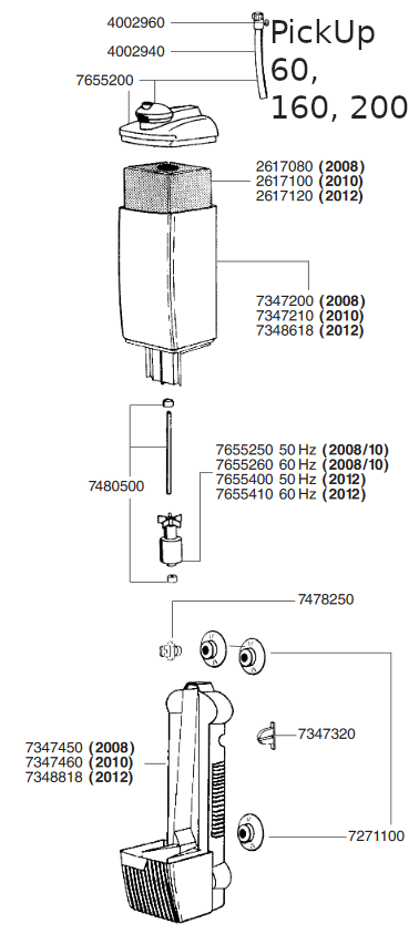 - PickUp 200 (2012) roottori 7655400 soveltuu myös Aquaball 45 (2206) ja 60 (2208) suodattimiin