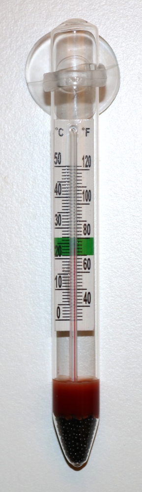 Imukupilla akvaarioon kiiinnitettävä lasinen lämpömittari